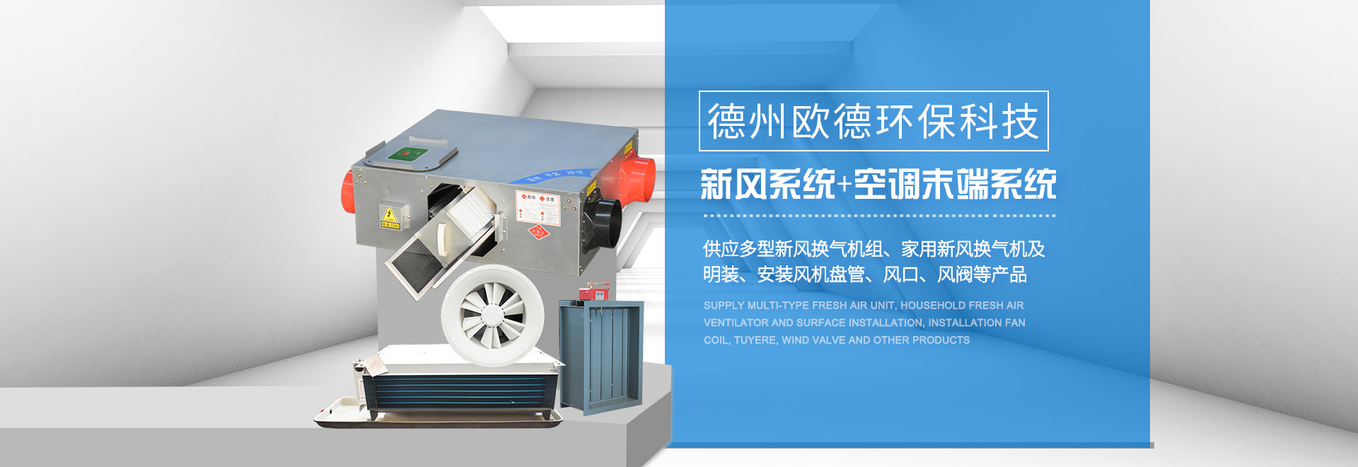 德州歐德環(huán)??萍加邢薰疚挥谏綎|省德州市武城經(jīng)濟(jì)開發(fā)區(qū),是一家集空調(diào)設(shè)備產(chǎn)、研、銷相結(jié)合的現(xiàn)代化企業(yè)。歐德以技術(shù)水平、服務(wù)標(biāo)準(zhǔn),贏得客戶的信任。公司建有現(xiàn)代化水平的商用空調(diào)設(shè)備生產(chǎn)線與末端設(shè)備生產(chǎn)線,可定制生產(chǎn)多型空調(diào)設(shè)備。  公司主要產(chǎn)品:風(fēng)機(jī)(排煙風(fēng)機(jī)、軸流風(fēng)機(jī)、邊墻風(fēng)機(jī)、斜流風(fēng)機(jī)(混流風(fēng)機(jī))、屋頂風(fēng)機(jī)、離心風(fēng)機(jī)、誘導(dǎo)風(fēng)機(jī))、新風(fēng)處理機(jī)組、吊頂式空調(diào)器、風(fēng)機(jī)盤管(臥式暗裝風(fēng)機(jī)盤管、臥式明裝風(fēng)機(jī)盤管、立式明裝風(fēng)機(jī)盤管、卡式風(fēng)機(jī)盤管等),各類通風(fēng)管道(共板法蘭風(fēng)管、酚醛風(fēng)···